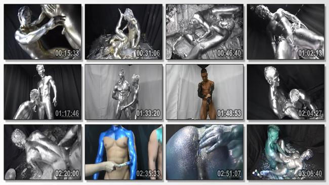 竿の先までメタルに塗り染められたマッチョ達が、人間の肉体から彫像へと進化し淫らに筋肉を求め盛り合う!!